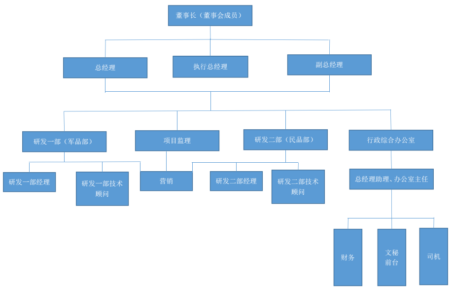 南京丝瓜APP色版测控技术有限公司实施董事会领导下的总经理负责制的现代企业管理制度,全面负责企业的生产、经营、技术、营销等各项管理工作,下设副总、项目监理、军品研发部、民品研发部以及行政办公室。
